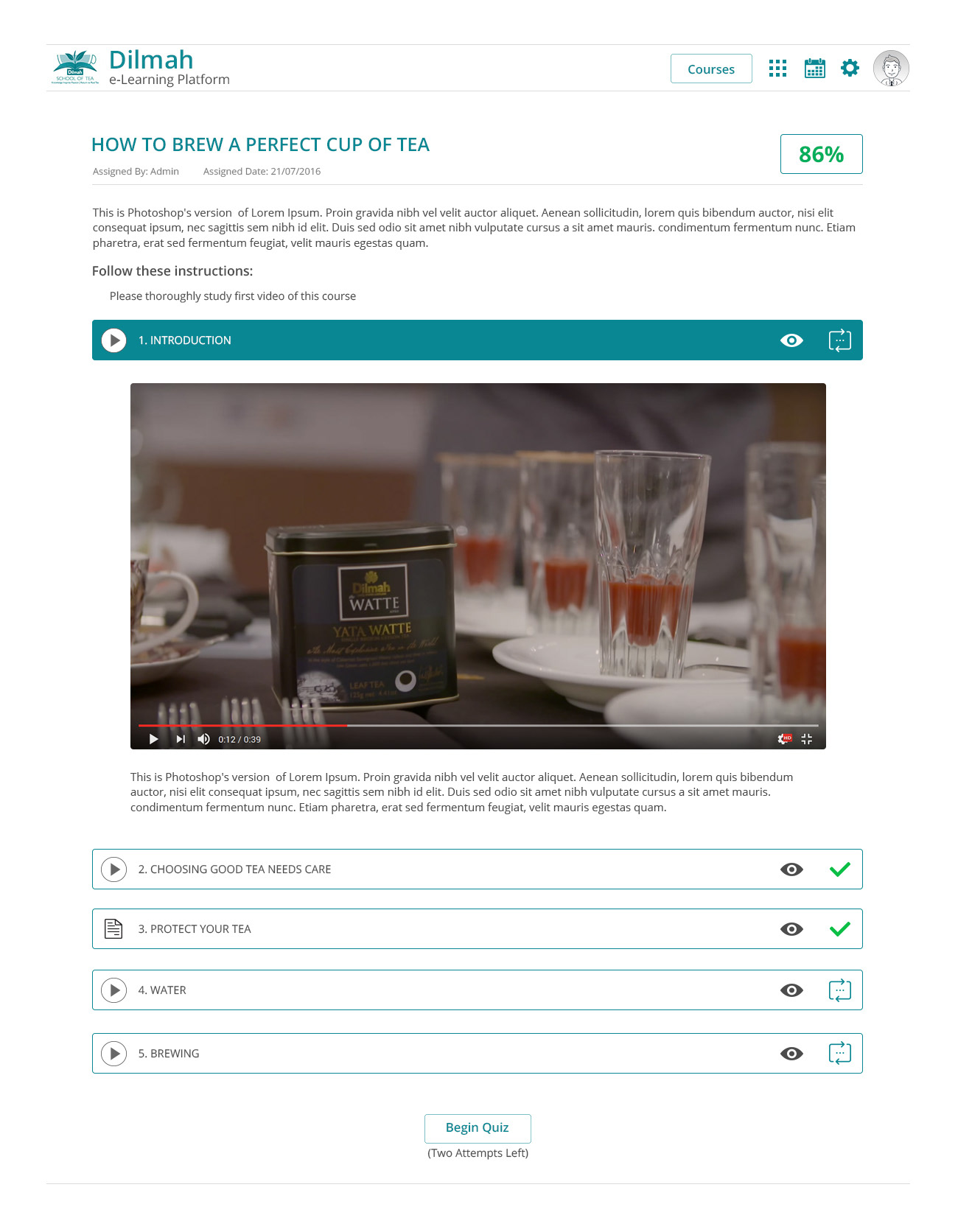 Dilmah eLearning Platform - UI UX Design